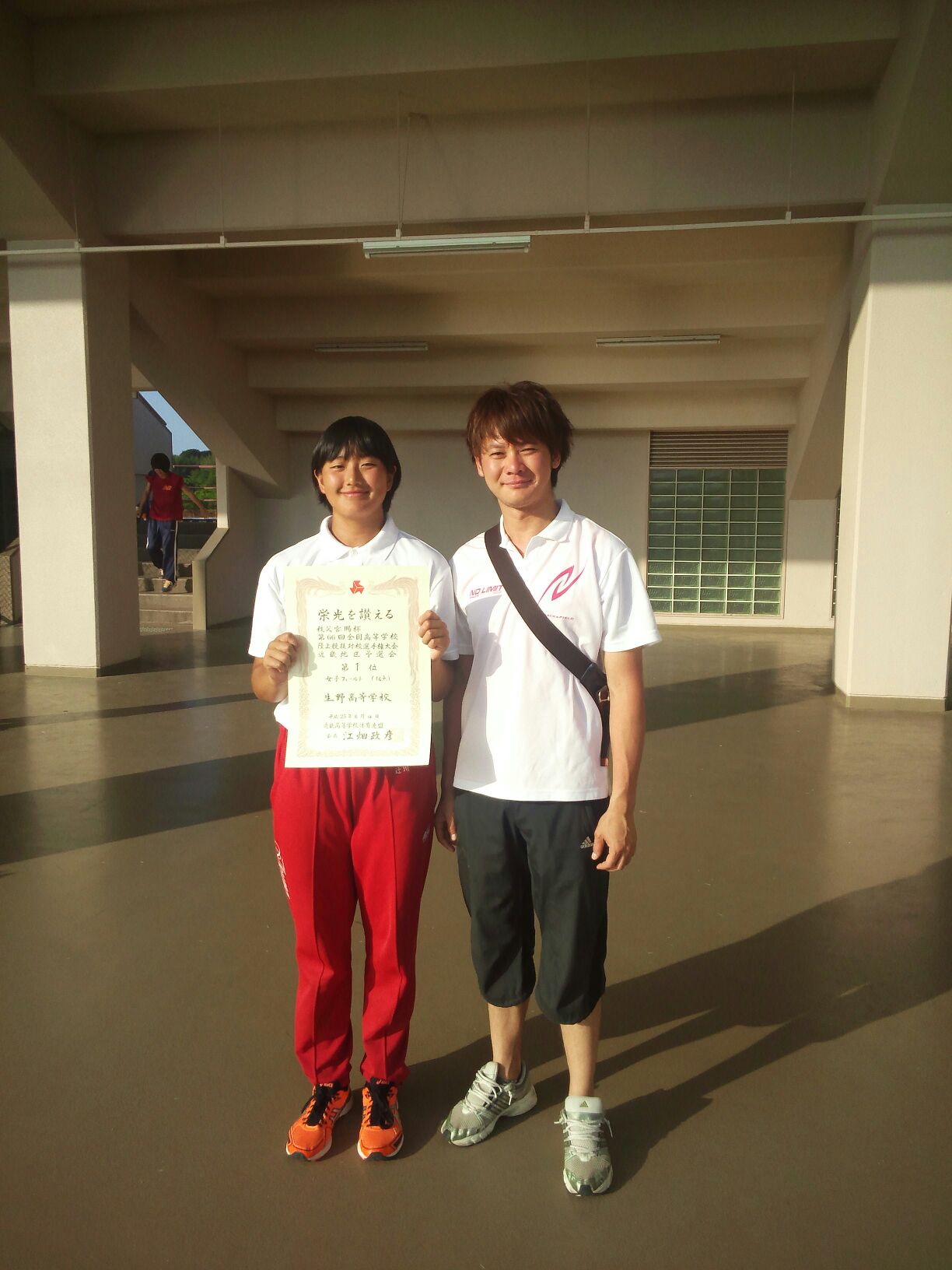 平成27年度全国和歌山インターハイ走幅跳優勝の摂津高校Tさん。2年生ながら、優勝しコロンビアで行われる世界ユース日本代表にも選ばれました。まだ、2年生なので来年の活躍が楽しみです。
